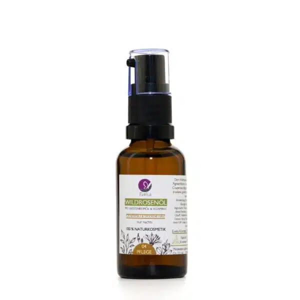 Veganes Wildrosenöl für Gesicht & Körper – intensive Pflege bei trockener, reifer & sensibler Haut. Ideal als nährende Nachtpflege.